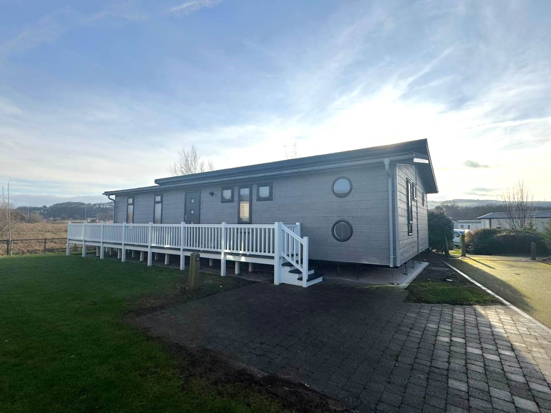 With a striking appearance including a split-level roofline this holiday lodge immediately sets it apart from conventional holiday homes and the theme continues inside.