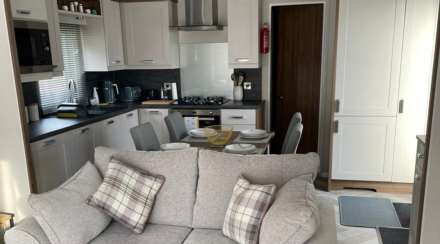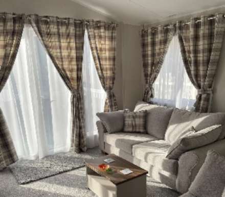 The Sheraton is a classic home that is sure to turn heads. With a soothing new colour palette for 2021, it's the perfect retreat from busy modern life. Need that extra space? The Sheraton's lounge area is modern, spacious and a great place to unwind with family and friends. The Sheraton's kitchen is open plan and includes modern amenities, such as an integrated fridge freezer and microwave. Additional options include a slimline dishwasher and integrated washer/dryer. Built with an en-suite shower and ample floor space, the Sheraton's bathroom is ideal for the whole family. Stay comfortable and toasty all year round with the cashmere coloured soft furnishings and classic, warm tartan curtains and cushions. The lodge has two bedrooms master bedroom en suite with walk in wardrobe, and a twin. . Sheraton Lodge Specification - including CanExel® cladding and window frames in a choice of colours, Residential Specification BS 3632 (2015), outlook French doors to lounge and Sheraton Lodge name badge,